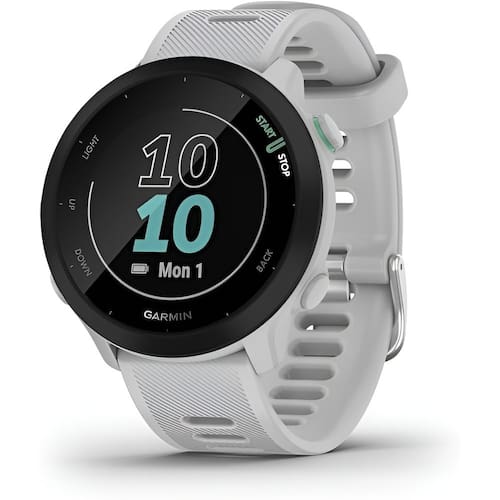 GPS Garmin Forerunner 55 Branco COD. 010-02562-11 Conteúdo da Caixa - 1 GPS Forerunner 55 Branco - 1 Cabo de carregamento/dados - Documentação TAMANHO DA CAIXA, LXCXA 42 x 42 x 11,6 mm Adequado para pulsos com uma circunferência de 126-203 mm TAMANHO DO VISOR, LXA 26,3 mm (1,04') de diâmetro O que você vai amar DURAÇÃO DA BATERIA Até 2 semanas TREINOS SUGERIDOS DIARIAMENTE Sim (limitado) TIPO DE EXIBIÇÃO DO RELÓGIO Memória transfletiva em pixel (MIP) visível à luz solar CLASSIFICAÇÃO DA ÁGUA DO RELÓGIO 5 caixas eletrônicos Disposições Gerais MATERIAL DA PULSEIRA Silicone MATERIAL DA LENTE Vidro quimicamente reforçado BRACELETES DE DESBLOQUEIO RÁPIDO Sim (20 mm, padrão da indústria) TAMANHO DA CAIXA, LXCXA 42 x 42 x 11,6 mm Adequado para pulsos com uma circunferência de 126-203 mm PESO 37 g TAMANHO DO VISOR, LXA 26,3 mm (1,04?) de diâmetro RESOLUÇÃO DO VISOR, LXA 208 x 208 píxeis TELA COLORIDA DURAÇÃO DA BATERIA: até 2 semanas Modo de GPS: até 20 horas Ver detalhes MÉTODO DE CARREGAMENTO Carregador de plugue proprietário da Garmin MEMÓRIA/HISTÓRICO 200 horas de dados de atividade Recursos do relógio HORA/DATA SINCRONIZAÇÃO DE HORA DO GPS HORÁRIO DE VERÃO AUTOMÁTICO DESPERTADOR TEMPORIZADOR CRONÔMETRO HORÁRIOS DO AMANHECER/PÔR DO SOL Monitoramento de saúde FREQUÊNCIA CARDÍACA MEDIDA NO PULSO TAXA DE RESPIRAÇÃO (24X7) IDADE DE CONDIÇÃO FÍSICA LEMBRETES PARA RELAXAR TEMPORIZADOR DE RELAXAMENTO RESPIRATÓRIO MONITORAMENTO DA SAÚDE FEMININA Sensores GPS GLONASS GALILEU MONITOR DE FREQUÊNCIA CARDÍACA DE PULSO GARMIN ELEVATE™ ACELERÔMETRO Recursos inteligentes diários CONECTIVIDADE Bluetooth , ANT+ NOTIFICAÇÕES INTELIGENTES CALENDÁRIO CLIMA CONTROLO DE MÚSICA E MUITO MAIS. Código Homologação Anatel 066642103330
