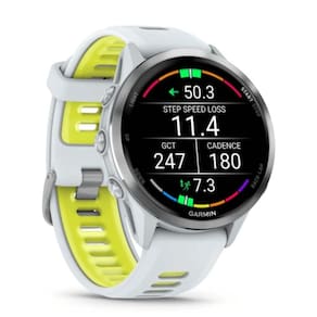 Relógio Garmin Forerunner 970 com Monitor Cardíaco de Pulso e GPS Marfim em titânio com pulseira Amarela translúcida Marfim e com Microfone e Alto-Falante Cod: 010-02969-01