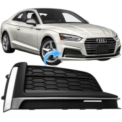 Rade Moldura do farol de milha do parachoque dianteiro Lado direito Passageiro , para veiculos sem o farol de milha Aplicação: Audi A5 Sportback 2.0 16v Tfsi Ambition Plus - 2017 e 2018 Código: 8W6807682F Peça nova, importada, à , qualidade Excelente acabamento e alinhamento de 3 meses Marca: Não Informado