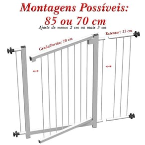 Composição do Produto: - 1 Grade Portão de 68 cm - 1 Extensor de 15 cm - 4 conjuntos de parafusos + manípulos + buchas para fixação