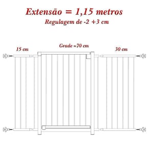 MULTIGRADE - GRADE PORTÃO + 1 EXTENSOR 30 CM + 1 EXTENSOR 15 CM + KIT FIXAÇÃO - MULTIFORMACor: PRETO- Montagens possíveis: 70 cm; 85 cm; 1,00m ou 1,15 m considerar regulagem de 2 cm para menos e 3 cm para mais controlado pelo conjunto de fixação - Altura do portão: 77 cm- Espaçamento entre varetas da grade: 5cm- Distancia da travessa inferior: 5 cm- Estrutura tubular fabricada em aço com aplicação de pintura epóxi, para aumentar a durabilidade- Sua instalação dispensa o uso de ferramentas ou furos para fixação- O sistema de travamento por pressão impede sua abertura por crianças ou animais, separando os ambientes- Quando acionado, permite abertura completa da grade para ambos os lados- Seu sistema de passagem mais amplo e travessa em altura reduzida, facilitam a passagem mesmo para pessoas com alguma dificuldade de locomoção.Composição do Produto:- 1 Grade Portão de 68 cm- 1 Extensor de 15 cm- 1 Extensor de 30 cm- 4 conjunto de parafusos + manípulos + buchas para fixaçãoObservação:- nunca utilize este produto ou qualquer outro similar como grade de proteção ou segurança em escada, janela ou similar- Sua função é exclusivamente como Separador de Ambientes.A MULTIFORMA produz MULTIGRADE para vão de 70 cm até 1,50 m que podem ser fixadas sem necessidade de furos e/ou ferramentas, nas cores Branco, Preto, Prata, Azul, Rosa e Cobre lançamento