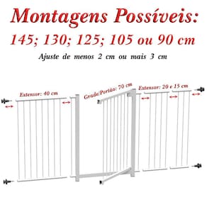 - Montagens possíveis: 70 cm; 85 cm; 90 cm; 1,00 m; 1,05 M; 1,20 m ou 1,45 m (considerar regulagem de 2 cm para menos e 3 cm para mais controlado pelo conjunto de fixação)