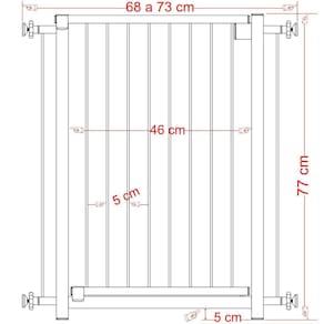 - montagens possíveis: 70 cm; 90 cm; 1,00m ou 1,20 m considerar regulagem de 2 cm para menos e 3 cm para mais controlado pelo conjunto de fixação - altura do portão: 77 cm - espaçamento entre varetas da grade: 5cm - distancia da travessa inferior: 5 cm