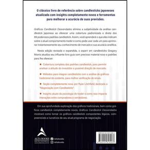 O clássico livro de referência sobre candlesticks japoneses atualizado com insights completamente novos e ferramentas para melhorar a acurácia de suas previsões. Gráficos Candlestick Desvendados elimina a subjetividade da análise candlestick japonesa ao oferecer uma cobertura padronizada e direta dos 89 poderosos padrões candlestick. Assim, você aprenderá o que eles indicam sobre o atual comportamento trader e como pode usar cada um para aprimorar instantaneamente seu conhecimento de mercado e sua acurácia analítica. Nesta edição revisada e expandida, o expert em candlesticks Gregory Morris atualiza seu influente livro guia com precioso material novo e padrões para lhe oferecer: Cobertura completa dos padrões candlestick, para permitir analisar a atitude do investidor e possível direção de mercado. Métodos para integrar candlesticks com a análise de gráficos tradicional do ocidente, para melhor verificação de sinais. Seção completamente nova, por Ryan Litchfield, dedicada a “Negociação com Candlesticks”. Insights atuais da psicologia do trader e como isso impacta interações entre compradores e vendedores. Em sua aprofundada exploração dos gráficos tradicionais, bem como gráficos candlestick completamente novos, Gráficos Candlestick Desvendados mostrará como tornar os gráficos candlestick componentes lógicos, compreensíveis e lucrativos de seu atual programa de negociação.