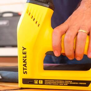 Uma ferramenta excelente da marca Stanley! O grampeador e pinador elétrico TRE550 pode operar grampos e pinos e possui a empunhadura perfeita para este tipo de trabalho que exige mais firmeza, dando mais conforto nas mãos. O ajuste de potência permite que você opere nos mais diversos materiais, desde os mais macios até os mais duros, como placas de MDF por exemplo. Perfeito para todo tipo de trabalho, da marcenaria à bricolagem é a ferramenta necessária para todo tipo de serviço. Com a potencia necessária para o trabalho, sem compressores pneumáticos. Possui alça ergonômica para mais conforto e segurança no serviço pesado e mecanismo anti-interferência para maior segurança e precisão.