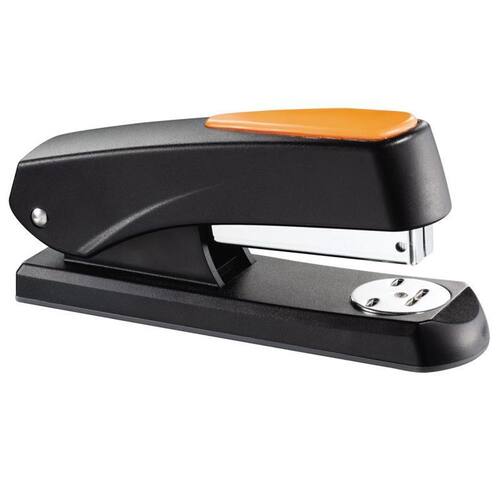 Grampeador Universal A17 Preto Half Strip (26/6, 24/6). Corpo em plástico resistente e barra 100% em metal. 3 funções: grampeamento, tacheamento (abertura de 180) e grampeamento temporário.