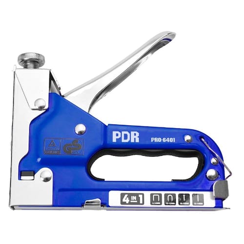 O Grampeador e Pinador Manual 4 em 1 PRO-6401 PDR é indicado para tapeçarias, estofarias, marcenarias, artesanatos, decorações, móveis, fixação de tecidos, forros, papéis, telas, entre outros.