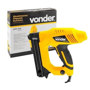 Grampeador/pinador elétrico é indicado para estofarias, marcenarias, artesanato, madeiras moles, entre outros. Proporciona maior agilidade nos processos de fixação. Possui empunhadura com cobertura emborrachada que confere maior conforto ao operador. Conta, ainda, com amortecedor de borracha que evita marcações nas peças e sistema de segurança que só permite o acionamento do grampeador/pinador quando pressionado à peça, evitando disparos involuntários. Utilizar somente grampos tipo 600 Vonder de 16mm e 19mm de altura e pinos tipo F Vonder de 15mm, 20mm e 25mm de altura; Fator de trabalho: máximo de 20 grampeadas por minuto. Especificações Técnicas: Tensão V : 110 Frequência Hz : 60 Largura do grampo indicado: 5,7mm Espessura do grampo indicado: 1,0mm Altura do grampo indicado: 16mm e 19mm Tipo e tamanho de pino indicado: Tipo F de 15mm, 20mm e 25mm Espessura do pino: 1,00mm Capacidade aproximada de grampos/pinos: 100 grampos / pinos Índice de proteção IP : IP20 Segue norma: IEC 607451 e IEC 60745216 Massa aproximada: 1,6kg Marca: Não Informado Ean: 7893946534301