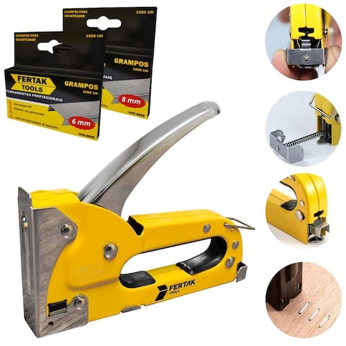 Tipo de Grampeador: Manual Profissional Material: Aço Carbono Compatibilidade: Grampos Retos 4 - 8mm Marca: Fertak