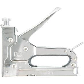 Corpo em chapa de aço cromado, proporcionando maior resistência à oxidação/corrosão, e parafuso de ajuste de pressão da mola. Pode ser utilizado como grampeador e pinador. Acompanha 600 grampos.