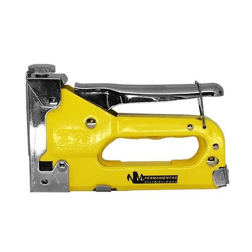 Grampeador Manual de Tapeceiro Grampo 4 - 14 mm - NM Ferramentas - Grampeador de tapeceiro - Fabricado em aço - Equipado com ajuste e profundidade de cravar - Utilizado com grampos para fixar materiais finos em folha na base de madeira ou aglomerado - Indicado para grampos Tipo 53 - Altura do grampo: 4 - 14 mm Ficha técnica - Modelo: AM-45028 Marca: Não Informado
