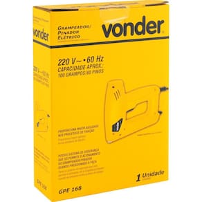 Indicado para estofarias, marcenarias, artesanato, madeiras macias, entre outros. ATENÇÃO: para não danificar o equipamento, a frequência máxima deve ser de até 20 disparos por minuto. Grampos indicados: 28.98.168.208, 28.98.168.210, 28.98.168.212, 28.98.168.214 e 28.98.168.216. Pino indicado: 28.98.916.015. Utilizar somente os grampos e pino indicados.