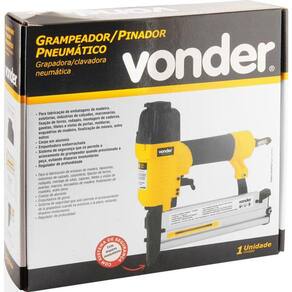 Indicado para fabricação de embalagens de madeira, estofarias, indústrias de calçados, marcenarias, fixação de forros, rodapés, montagem de cadeiras, gavetas, filetes e vistas de portas, molduras, esquadrias de madeira, finalização de móveis, entre outros. Mantenha a ferramenta constantemente lubrificada e utilize sempre o regulador de pressão e o lubrificador de linha com óleo pneumático. Utilizar somente grampos marca VONDER apropriados para este equipamento.Destaques e diferenciais: