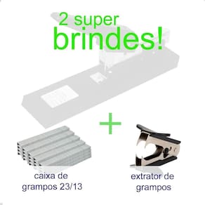 - Aceita diversos tamanhos de grampos: 23/6, 23/8, 23/10 e 23/13. Dessa forma caso não queira grampear muitas páginas de uma única vez poderá usar um grampo menor que não ficará saliente no papel.