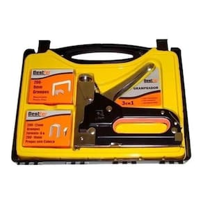 Grampeador Profissional Tapeçaria Estofado + Grampos E Pregos Grampeador e Pinador 3 em 1 Para Tapeceiro com 400 Grampos e 200 Pregos Amplamente utilizado em artesanatos, tapeçarias, telas de pintura, confecção de estofados, festas e fixação em geral de grampos Aplica: - Grampos comuns de 4mm até 14mm; - Grampos formato U de 10mm até 12mm; - Pinos pregos sem cabeça de 10mm até 12mm. Tamanho aprox.: 14cm x 16cm x 2,5cm Acompanha: 200 Grampos de 11x8mm; 200 Grampos formato U de 12x6mm; 200 Pregos sem cabeça de 10x2mm; 1 Grampeador; 1 Maleta para transporte. Marca: Sg Utilidades
