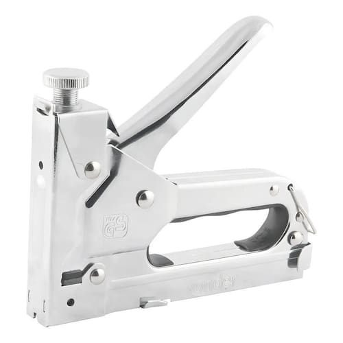 Grampeador/pinador Manual Vonder Plus O Grampeador Vonder Plus, que pode ser utilizado como grampeador ou pinador, é o aparelho indicado para decorações, artesanato, tapeçaria, estofados e móveis de . Com corpo em chapa de aço cromado e parafuso de ajuste da mola, o grampeador proporciona maior resistência à oxidação/corrosão e melhor precisão em seus trabalhos, além, de acompanhar uma caixa com 600 grampos. É indicado utilizar somente grampos marca VONDER com espessura de 1,2 mm. Especificações Técnicas: - Tipo: Manual - Material do grampeador manual: Chapa de aço - Tipo de grampo indicado: Grampos Tipo Reto; Tipo U; Tipo Pino T - Altura do grampo indicado: Grampos Tipo Reto 6 mm, 8 mm e 10 mm ; Grampos Tipo U 10 mm e 12 mm ; Pinos -Tipo T 10 mm, 12 mm e 14 mm - Largura do grampo reto indicado: 11,4 mm - Espessura do arame do grampo indicado: 1,2 mm - Cor do grampeador manual: Cromado - Dimensões L x A x C : 2,5 x 14 x 15,5 cm - Massa aproximada peso : 0,672 kg Conteúdo da Embalagem: 01 Grampeador/Pinador Vonder Plus 01 Caixa com 600 peças de grampos Marca: Não Informado