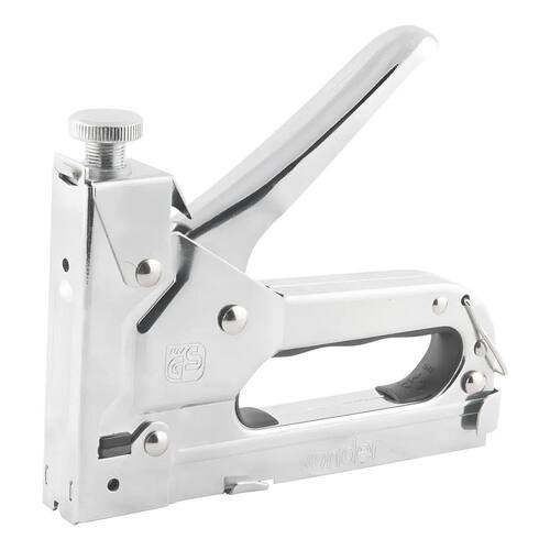 Grampeador/pinador Manual Vonder Plus O Grampeador Vonder Plus, que pode ser utilizado como grampeador ou pinador, é o aparelho indicado para decorações, artesanato, tapeçaria, estofados e móveis de . Com corpo em chapa de aço cromado e parafuso de ajuste da mola, o grampeador proporciona maior resistência à oxidação/corrosão e melhor precisão em seus trabalhos, além, de acompanhar uma caixa com 600 grampos. É indicado utilizar somente grampos marca VONDER com espessura de 1,2 mm. Especificações Técnicas: - Tipo: Manual - Material do grampeador manual: Chapa de aço - Tipo de grampo indicado: Grampos Tipo Reto; Tipo U; Tipo Pino T - Altura do grampo indicado: Grampos Tipo Reto 6 mm, 8 mm e 10 mm ; Grampos Tipo U 10 mm e 12 mm ; Pinos -Tipo T 10 mm, 12 mm e 14 mm - Largura do grampo reto indicado: 11,4 mm - Espessura do arame do grampo indicado: 1,2 mm - Cor do grampeador manual: Cromado - Dimensões L x A x C : 2,5 x 14 x 15,5 cm - Massa aproximada peso : 0,672 kg Conteúdo da Embalagem: 01 Grampeador/Pinador Vonder Plus 01 Caixa com 600 peças de grampos Marca: Não Informado Ean: 79003506121040