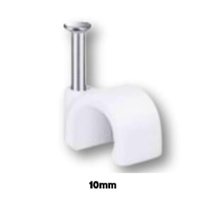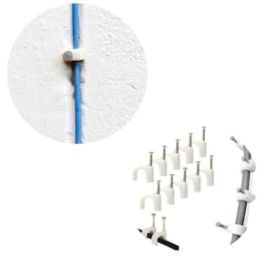 Cartela com 50 peças Cor: Branca Grampo curvado de 10mm Produzido em aço de alta resistência Ideal para fixação de fios e cabos Fácil aplicação com martelo