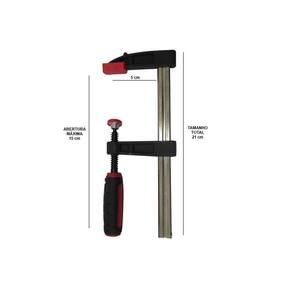 Grampo Sargento para Carpinteiro 150x50x210 N6 - 204029 - MTX O Grampo sargento é feito de plástico resistente a golpes com guia de aço. Os dentes tem placas especiais para evitar a deformação de peças em processamento. O dente da base pode ser deslocado ao longo de toda a guia e é fixado por meio de um cabo, pode também ser deslocado para a outra extremidade da guia, o que permite usar o grampo para descerrar Características Para utilização em carpintarias e marcenarias