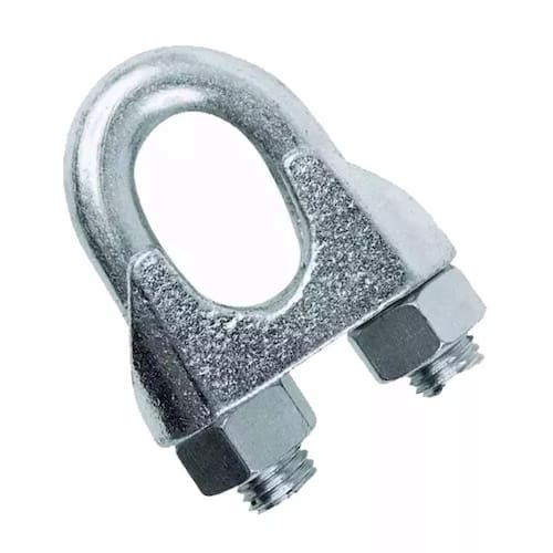 Grampo para cabo de aço tipo pesado é fabricado em aço carbono galvanizado. Aplicado na construção de laços e amarrações em cabos de aço ou cordoalhas que exigem alto nível de resistência à tração e em condições severas de uso. Tamanho 5/8" 16mm Capacidade de Torção: 21,41Kgf/m2 Pacote com 10 Unidades. Ref. 07015062 Marca: Starfer
