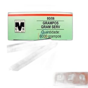 CARACTERÍSTICAS TÉCNICAS: Material: Aço carbono Medidas: 6mm altura x 12mm largura x 0,61mm x 0,94mm espessura Tipo do grampo: Tipo reto Quantidade por caixa: 6000 grampos Marca: Rocama Ref.: 7008708 Marca: Não Informado