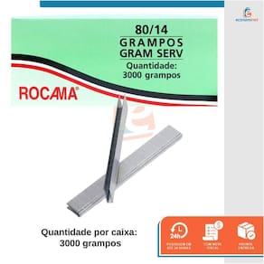 CARACTERÍSTICAS TÉCNICAS: Material: Aço carbono Medidas: 10mm altura x 12mm largura x 0,61mm x 0,94mm espessura Tipo do grampo: Tipo reto Acabamento do grampo: Zincado Quantidade por caixa: 4000 grampos Marca: Rocama Ref.: 7008716 Marca: Não Informado Ean: 7891638997168