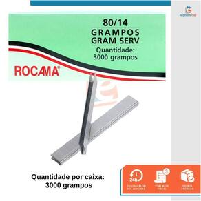 CARACTERÍSTICAS TÉCNICAS: Material: Aço carbono Medidas: 10mm altura x 12mm largura x 0,61mm x 0,94mm espessura Tipo do grampo: Tipo reto Acabamento do grampo: Zincado Quantidade por caixa: 4000 grampos Marca: Rocama Ref.: 7008716 Marca: Não Informado