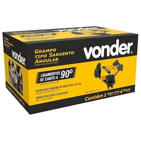 Marca: VonderConteúdo da embalagem:4 Grampos. Acompanha: 8 batentes para reposição.Destaques e diferenciais:Práticos e de fácil manuseio, permitem maior precisão e agilidade no trabalho, auxiliando na fixação de peças.Aplicações e dicas de uso:Indicados para fixação rápida em madeiras, para ligamentos de canto a 90. Ideais para fixação de quadros, estantes, armários, tábuas em geral e muito mais.Detalhes TécnicosTipo: Sargento angular Material da haste do grampo: Nylon Capacidade máxima de abertura: 22 mm Massa aproximada peso kg : 0,452 kg - E CDC : legal: 90 dias Marca: Não Informado