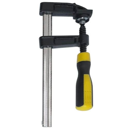 Além disso, o Grampo Sargento Tipo F possui abertura autoajustável, facilitando o trabalho e bordas de aperto emborrachadas que ajudam a não danificar a peça que será fixada.