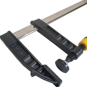 Com a capacidade de aperto rápido ou fixação de peças, montagem de móveis, processos de colagem e muito mais, este grampo sargento possui abertura autoajustável, o que agiliza o trabalho. Suas bordas de aperto emborrachadas ajudam a não danificar a peça que será fixada.