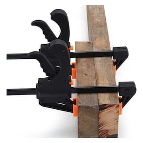 Grampo para carpinteiro tipo sargento, universal, aperto rápido, corpo plástico, ideal para fixar peças em processos de colagem.