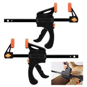 Além disso, o kit conta com 4 grampos alicate plástico para marceneiro, com dimensões de 9 x 7 x 1,5 cm. Feitos em aço carbono e PP, esses grampos são modernos e articulados, proporcionando melhor aderência à superfície. Possuem dentes na base para uma fixação precisa e cabo com sistema de mola, gerando maior pressão.