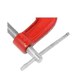 Esse grampo recebeu tratamento eletroquímico (bicromatizado), protegendo desta forma corrosão. Fuso de aço com rosca trapezoidal, o que garante movimento leve na aproximação e afastamento do mordentes com aperto firme e seguro. Pintura em esmalte sintético vermelho. Ideal para aperto firme e seguro de materiais me marcenarias,serralherias e industrias.