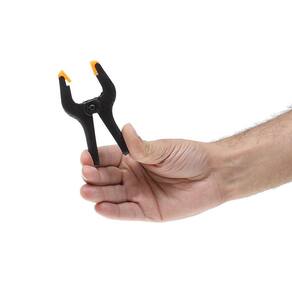 Fabricado em polipropileno, possui mordentes plásticos articulados para maior aderência a superfície, dentes na base para melhor fixação do grampo, e cabo com sistema de mola que proporciona ainda mais pressão.