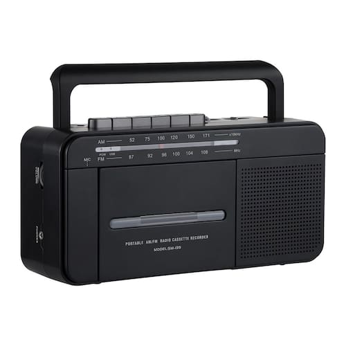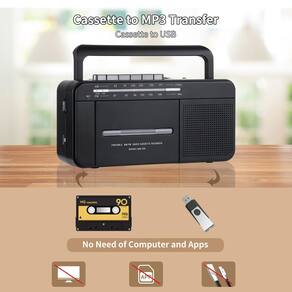 Gravador portátil de rádio AM FM, gravador de cassetes, conversor de MP3 Um gravador de cassetes reproduz sua coleção de fitas. Volte no tempo e reviva suas boas lembranças do passado. O boombox do toca-fitas tem um grande alto-falante embutido que permite que você obtenha uma reprodução sem perdas de alta fidelidade. É também um gravador de cassetes com microfone embutido para gravar suas histórias em fitas vazias . Este gravador de cassetes tem um design portátil que permite executá-lo ao ar livre a qualquer momento e ouvir seus programas de rádio AM FM favoritos no parque. Você pode colocá-lo em casa e conectá-lo à energia AC para desfrutar de uma bela música. Ou você também pode optar por colocar baterias de 4 C, para poder carregá-las facilmente para o exterior. -?Novo gravador clássico de toca-fitas de rádio?Este é um toca-fitas multifuncional que não apenas reproduz fitas, mas também reproduz música MP3, transfere cassetes para arquivos digitais MP3 ou ouve estações de rádio AM FM. Também é um gravador com microfone embutido, gravando notícias de áudio ou rádio em fita cassete. Ao mesmo tempo, uma alça giratória acoplada torna este toca-fitas de rádio fácil de levar para qualquer lugar. -?Converter fita em MP3?Nosso gravador converte rapidamente cassetes antigas para o formato MP3 por meio de uma unidade flash USB, sem necessidade de dispositivos extras ou download de aplicativos. Apenas um botão de gravação para obter uma conversão sem perdas de cassete para USB. Além disso, um microfone integrado pode gravar músicas diretamente no USB, que pode funcionar como um dispositivo de gravação. -?Boa qualidade de som e entrada para fone de ouvido?O toca-fitas retrô é construído com um alto-falante grande de 3” e 6 W que produz um excelente som claro e nítido para atender à alta demanda de qualidade de áudio sem qualquer distorção. Se você não quiser incomodar outras pessoas, um fone de ouvido de 3,5 mm para você ter espaço de audição privado. -?Rádio AM FM com excelente recepção?Este toca-fitas é equipado com uma longa antena telescópica e um chip DSP avançado embutido, tem uma ótima recepção para receber estações AM/FM. Com uma grande escala de frequência AM FM clara, é fácil de operar tanto para idosos quanto para crianças. AM 520-1710 kHz, FM 87-108 MHz. -?Duas fontes de alimentação?A alimentação AC-110V-50Hz do toca-fitas inclui o cabo de alimentação, amplamente instalado na sala, cozinha e sala de estar. Se houver falta de energia, este toca-fitas funciona com baterias de células 4xC (não incluídas), você pode continuar curtindo sua preciosa fita ou recebendo notícias em tempo real em qualquer lugar. -?Compra confiável?A caixa de som com gravador de cassetes tem botões e botões grandes para facilitar a operação, um grande botão de leitura e um ajuste preciso, tornando-a adequada para uso tanto por idosos quanto por crianças. O design retrô e a operação fácil de usar tornam este toca-fitas a escolha ideal de presente. Além disso, nossa equipe profissional de atendimento ao cliente estará de prontidão 24 horas por dia.