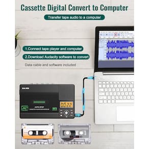 Apresentando o conversor de gravador de fita digital, um dispositivo de áudio versátil que não apenas reproduz fitas cassete, mas também suporta cartões TF. Equipado com microfones de alta definição, este toca-fitas portátil se destaca em gravação, transcrição e oferece qualidade de som nítida. Com dimensões de apenas 6,3 x 3,9 x 1,2 polegadas e um peso de apenas 0,52 libras, este toca-fitas é perfeito para uso em qualquer lugar. Alimentado por 4 pilhas AA ou um cabo de alimentação USB tipo C, o conversor digital de cassete de áudio MP3 permite gravar conteúdo de fitas cassete diretamente em um cartão TF. Além disso, você também pode gravar músicas armazenadas em um cartão TF em fitas cassete. Para aqueles que desejam digitalizar sua coleção de fitas cassete, o software incluído Audacity permite a transferência perfeita de músicas para um computador. Este conversor de cassete USB C para MP3 possui um alto-falante de 2 W e um fone de ouvido de 3,5 mm de alta qualidade para experiências auditivas envolventes. Construído com materiais duráveis, é feito para durar. Juntamente com um excelente atendimento ao cliente, o gravador de toca-fitas oferece um toque moderno no toca-fitas clássico. Diga adeus à tecnologia ultrapassada e aproveite a conveniência e a versatilidade desse dispositivo inovador. O conversor digital de cassete é um bom presente para sua família . -?Walkman Cassette Player Recorder Converter?Aproveite a capacidade de reproduzir e gravar com este dispositivo versátil. Reproduza suas fitas favoritas e grave o áudio usando o microfone embutido de alta sensibilidade. Ele também suporta reprodução de música em cartão SD e gravação de áudio. Perfeito para capturar memórias antigas ou criar novas gravações. -?Conversor bidirecional de cassete para digital?O toca-fitas suporta duas maneiras de converter música em cassete em MP3. Converta facilmente fitas cassete de áudio em arquivos digitais MP3 em um cartão SD (incluído) ou converta rapidamente cassetes antigas para o formato MP3 por meio de um cabo USB usando o software Audacity (incluído). Preserve sua preciosa coleção de músicas em um formato digital moderno. -?Compacto e LCD para facilitar a navegação?Medindo apenas 6,3 x 3,9 x 1,2 polegadas e pesando apenas 0,52 libras, é fácil de transportar e usar em qualquer lugar. Aproveite a conveniência de um LCD para facilitar a navegação e o controle de suas gravações. Diga adeus aos toca-fitas desatualizados e abrace a era digital com nosso conversor topo de linha. -?Bom som e opções convenientes de alimentação?Nosso conversor de gravador de cassetes possui um alto-falante embutido de 2 W para boa qualidade de som e um fone de ouvido de 3,5 mm para uma excelente experiência de audição privada. Ele é alimentado por cabo USB-C (incluído) ou quatro pilhas AA para maior comodidade. -?Suporte dedicado ao cliente?Esta capa para toca-fitas Walkman é feita de materiais ABS premium, tem uma boa construção sólida, é resistente e durável. Beneficie-se de um excelente atendimento ao cliente para resolver quaisquer dúvidas ou preocupações, garantindo uma experiência tranquila desde a configuração até o uso diário. Escolha o conversor de gravador de cassetes para obter uma solução confiável de conversão de áudio. -?O que você receberá?Estão incluídos um cartão SD de 16 GB e um leitor USB para armazenamento e transferência convenientes de suas músicas convertidas. Além disso, cada toca-fitas vem com um software conversor, um manual do usuário e um cabo de alimentação USB de 5V DC para oferecer outra maneira de converter um arquivo MP3 digital.