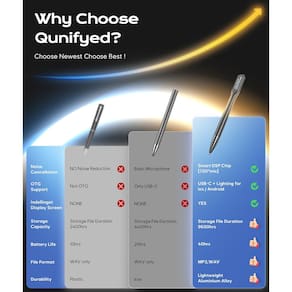 IMPORTANTE: Se for um produto elétrico, ele pode ser compatível com uma tomada de 110 volts. Se utilizado fora dos Estados Unidos, pode ser necessário um conversor de voltagem para garantir a operação adequada. Verifique se o produto que você está comprando é elétrico antes de considerar essas informações. ?Design de tela HD de alta qualidade?O gravador digital Qunifyed é diferente de outros dispositivos de gravação e é equipado com uma tela HD-LED que mostra os nomes dos arquivos. Ele lembra os usuários do status atual do dispositivo/tempo de gravação e da flutuação da frequência de gravação de forma mais proeminente. A aparência sofisticada parece uma tecnologia moderna do futuro, e as funções poderosas possibilitam fazer gravações importantes em qualquer lugar, a qualquer hora e em qualquer lugar. -?Design de tela HD de alta qualidade?O gravador digital Qunifyed é diferente de outros dispositivos de gravação e é equipado com uma tela HD-LED que mostra os nomes dos arquivos. Ele lembra os usuários do status atual do dispositivo/tempo de gravação e da flutuação da frequência de gravação de forma mais proeminente. A aparência sofisticada parece uma tecnologia moderna do futuro, e as funções poderosas possibilitam fazer gravações importantes em qualquer lugar, a qualquer hora e em qualquer lugar. -?Gravação com um toque?O gravador de voz Qunifyed foi projetado com um botão de ligar/desligar o clipe, basta pressionar o clipe para baixo para ligar e iniciar a gravação rapidamente. Durante a gravação, o display LED mostrará o nome do arquivo que está sendo gravado e a apresentação da frequência das ondas sonoras. A função de gravação com um toque garante que você não perca nenhum conteúdo crítico. -?Gravação ativada por voz?A gravação ativada por voz inicia automaticamente a gravação quando o som é detectado e pausa quando não há som, economizando espaço de armazenamento. A função de gravação ativada por voz está desativada por padrão. Para usar a função de gravação ativada por voz, você precisa se conectar ao computador e definir o interruptor da função de gravação ativada por voz para “Ligado”. (O inicial para “Ligado” e “Desligado” deve estar em maiúsculas, n e ff em minúsculas). -?Compatibilidade OTG poderosa?O gravador ativado por voz suporta a linha OTG com porta Tipo C integrada. O design simplificado o conecta diretamente ao iPhone/Android/PC sem virar a tampa ou usar conexões de cabo extras. Visualize, organize e compartilhe facilmente seus arquivos de gravação em ambientes internos e externos, em qualquer lugar. -?Memória de grande capacidade de 64 GB?O gravador de voz Qunifyed atualizado para 2024 tem uma memória de expansão de cartão TF de 64 GB embutida, o gravador digital de 64 GB pode armazenar até 4600 horas de arquivos de gravação (192 kbps). A bateria recarregável suporta até 32 horas de gravação contínua e 48 horas de reprodução de fones de ouvido. É um dispositivo de gravação profissional que pode satisfazer totalmente todas as suas necessidades de gravação! -?AI - Cancelamento inteligente de ruído?O gravador Qunifyed tem um microfone omnidirecional embutido de alto desempenho para captação de som surround de 360° e gravação de campo de 60 pés. Sua poderosa tecnologia de chip DSP 4.0 permite a redução inteligente de ruído para garantir gravação e reprodução nítidas de áudio de alta qualidade. Ele suporta uma taxa de bits máxima de 1536 kbps e pode gravar som de alta qualidade a uma distância de até 5 metros. -?Presente surpresa ideal?Este gravador permite escrever durante a gravação, o que o torna um presente perfeito para estudantes, advogados, empresários, professores, etc. É ideal para gravar reuniões, memorandos, palestras, entrevistas, etc. Conteúdo do conjunto: gravador*1, cartão TF de 64 GB*1, fones de ouvido dedicados*1, cabo micro-USB*1, adaptador OTG*1, recarga de substituição*5 (sem ferramentas) são obrigatórios), Manual do usuário*1 - 💌?SERVIÇO E GARANTIA OPORTUNOS?Todos os produtos da Qunifyed são garantidos por 2 anos. Durante esse período, qualquer produto pode entrar em contato conosco pela Amazon. Responderemos após necessidades de venda o mais rápido possível dentro de 12 horas! Nós nos preocupamos com a experiência de todos os nossos clientes, não é apenas uma questão de entrega, são os dados mais reais que precisamos para aprimorar nossos produtos!