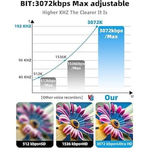 IMPORTANTE: Se for um produto elétrico, ele pode ser compatível com uma tomada de 110 volts. Se utilizado fora dos Estados Unidos, pode ser necessário um conversor de voltagem para garantir a operação adequada. Verifique se o produto que você está comprando é elétrico antes de considerar essas informações. 128 GB - ??Cancelamento triplo de ruído inteligente?O gravador de voz adota a tecnologia de redução de ruído de chip DSP inteligente triplo digital, que pode reduzir automaticamente 90% do ruído ambiente; o microfone estéreo pode capturar mais e mais nitidez para facilitar a audição de gravações estéreo em HD - ??Gravação máxima em HD de 3072 Kbps?O dispositivo de gravação com microfone minúsculo pode ajustar livremente o bit, incluindo 575 12 kbps/768 kbps/1024 kbps/1536 kbps/3072 kbps. Conheça seu requisitos para cada cena. Quanto maior o valor, mais claro é o som. - ??Redução de ruído PCM de 360°?O gravador de áudio é equipado com microfone de alta qualidade, redução dinâmica inteligente de ruído, o gravador profissional adota a tecnologia digital de redução de ruído tripla PCM, realiza gravação panorâmica de 360° e fornece um som verdadeiramente completo, claro e natural. - ??Tamanho pequeno e registro de data e hora?Este gravador ativado por voz é pequeno e prático, conveniente e rápido para viagens diárias e não ocupa espaço na bolsa. Você pode colocá-lo na bolsa de cosméticos, carteira, mochila escolar e pendurá-lo no cinto, mochila e chaveiro do carro. Cada gravação será nomeada com um carimbo de data/hora, facilitando e agilizando a localização do arquivo em seu computador. - ??Garantia vitalícia?Oferecemos uma garantia vitalícia. Se você encontrar algum problema, com nosso serviço de atendimento ao cliente pós-venda. Estamos empenhados em resolver todas as suas preocupações, garantindo sua tranquilidade. - ??Longo funcionamento?O gravador de voz incorpora uma grande bateria de lítio de 400mAh. Uma vez totalmente carregado, ele pode gravar continuamente por 48 horas. Ele possui uma função automática de economia de bateria fraca: quando o nível da bateria cai abaixo de 5%, o gravador salva automaticamente a gravação, garantindo que nenhum arquivo seja perdido. E tem um grande cartão de memória embutido de 64G, que pode armazenar cerca de 750 horas de arquivos de gravação. - ??Gravador ativado por voz?Este dispositivo de gravação possui um microfone DSP sensível com cancelamento de ruído. Quando configurado para o modo de ativação por voz, ele entra automaticamente no modo de hibernação quando não há som ao redor e é ativado quando o som excede 45 decibéis. Isso ajuda a prolongar o tempo de gravação e economizar espaço de armazenamento.