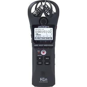 Um ajuste ideal para músicos solo e podcasters, bem como um excelente ponto de entrada no mundo do áudio para design de vídeo e som, o gravador portátil preto zoom h1n possui um microfone estéreo integrado que permite gravar facilmente duas faixas de áudio de alta resolução na palma da sua mão. Os compositores apreciarão overdubbing ilimitado para criar músicas camada por camada, enquanto os cineastas e produtores de podcast apreciarão a capacidade do h1n de capturar fala limpa e sem distorção.