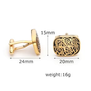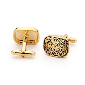 Material: cobre Tamanho: 24 mm × 15 mm × 20 mm Peso: 16 g Design elegante: essas abotoaduras apresentam um intrincado padrão gravado em preto em uma elegante base retangular banhada a ouro, oferecendo uma aparência vintage e sofisticada. Qualidade premium: feitas de cobre de alta qualidade, essas abotoaduras são duráveis e duradouras, mantendo um acabamento luxuoso. Estilo versátil: ideal para reuniões de negócios, casamentos ou qualquer ocasião formal, essas abotoaduras dão um toque refinado a qualquer combinação de camisa e terno. Ajuste perfeito: com um tamanho de 24 mm x 15 mm x 20 mm e um peso de 16 g, essas abotoaduras oferecem um ajuste confortável e seguro para todas as camisas com punhos. Apelo atemporal: se você está se vestindo para um evento especial ou procurando aprimorar seu traje profissional diário, essas abotoaduras são um acessório indispensável.