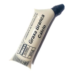 - Especificações Técnicas: Tipo: Graxa de Cálcio Branca Indicação: Corrente de motocicleta e aplicações industriais/marítimas Uso recomendado: Mancais de baixa rotação, esteiras e superfícies sujeitas à água Não indicada para altas temperaturas Peso: 80 g