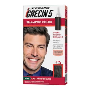 GRECIN 5 SHAMPOO COLOR TONALIZANTE CASTANHO ESCURO JUST FOR MEN Aparência Natural: Fórmula americana, cobre todo o grisalho e não deixa os cabelos avermelhados, para um visual super natural. Rápida +