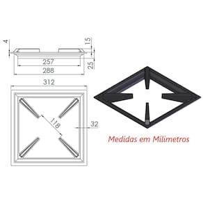 01 Grelha 4 Hastes MTQ Fogão Industrial Ferro Fundido 30x30cm.