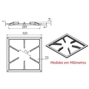 01 Grelha 6 Hastes GSP Fogão Industrial Ferro Fundido 30x30cm.