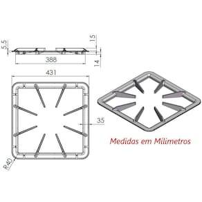 01 Grelha 8 Hastes GB Fogão Industrial de Ferro Fundido 40x40cm.