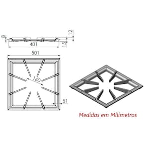 01 Grelha 8 Hastes Reforçada GLC Fogão Industrial Ferro 50x50cm.