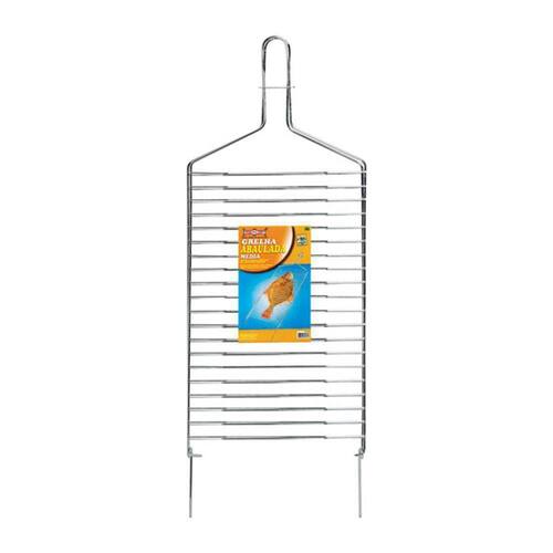 Grelha Abaulada Dupla Grande Cromada 83X28CmEste produto é ótimo para assar carnes, peixes, etc.. Ele tem uma trava para não correr ou abrir quando estiver assando. Carnes como Peixes, asinhas de frango, linguiças, vão ficar muito mais saborosos, pois está grelha não perfura a carne mantendo a gordura e cozinhando melhor. Possui 2 partes e uma presilha para segurar.Tamanho: 83X28CmCor: Prata