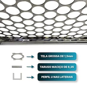 Escolher a largura da grelha conforme o tamanho da sua churrasqueira antes de efetuar a compra.
