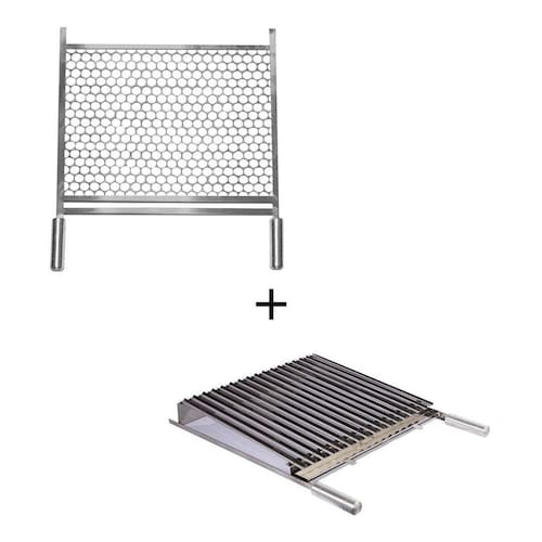Nossas grelhas argentinas parrillas e grelhas tela moeda são os melhores produtos para oferecer máxima resistência, eficiência e conforto para seu churrasco. Nossos modelos permitem maior eficiência e proporciona melhor aproveitamento dos preparos de sua carne, sem abrir mão de toda resistência e segurança necessária. Nossas grelhas são fabricadas 100% em inox 430 brilhante de excelente qualidade e durabilidade. Ideal para churrasqueiras de alvenaria, pré-moldadas e churrasqueiras em geral. Possui sustentação na parte traseira para encaixar na parte do fundo da churrasqueira. A grelha argentina confere a carne grelhada na brasa e um sabor inigualável, pois dispensa virar a carne a todo momento, sem fumaça e sem fogo alto, preservando o sabor no churrasco. Outro diferencial é que mesmo ao grelhar diferentes tipos de carnes, os sabores não se misturam com o uso da grelha argentina. Possui sistema de canaletas que ajudam a escoar a gordura das carnes até o reservatório evitando o excesso de fumaça e a formação de labaredas, proporcionando um preparo da carne totalmente diferenciado e único, deixando as carnes mais suculentas e saborosas. Canaletas são fixadas com pontos de solda deixando mais resistente e durável. O reservatório de gordura é removível para facilitar sua limpeza. Os cabos são de madeira revestidos em alumínio, não aquecem durante seu uso na churrasqueira acesa. A grelha tela moeda são perfeitas para todo tipo de preparo em gerais. Famosas grelhas tradicionais do churrasco, com o tamanho dos furos da grelha projetadas para que se torne um diferencial, preparando os alimentos de forma mais rápida e eficiente. Nosso kit com 2 grelhas é dinâmico, podendo preparar carnes bovina, suína, ovina, aves, frutos do mar, legumes e etc. Com a grelha argentina e a grelha tela moeda é possível grelhar alimentos de todos os tipos, para todos os gostos. Informações da grelha argentina picanheira: medidas da área útil da grelha = largura: 50 cm x comprimento: 45 cm. Altura total da grelha = parte frontal: 4,5 cm - parte traseira: 9 cm. Informações da grelha tela moeda: