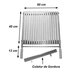 medidas da área útil da grelha = largura: 60 cm x comprimento: 40 cm. Altura total da grelha: 2 cm. Nosso kit contém: - 1 grelha argentina picanheira de inox com coletor de gordura completa. - 1 grelha tela moeda em inox completa. Imagens merament ilustrativas imagens meramente ilutrativas